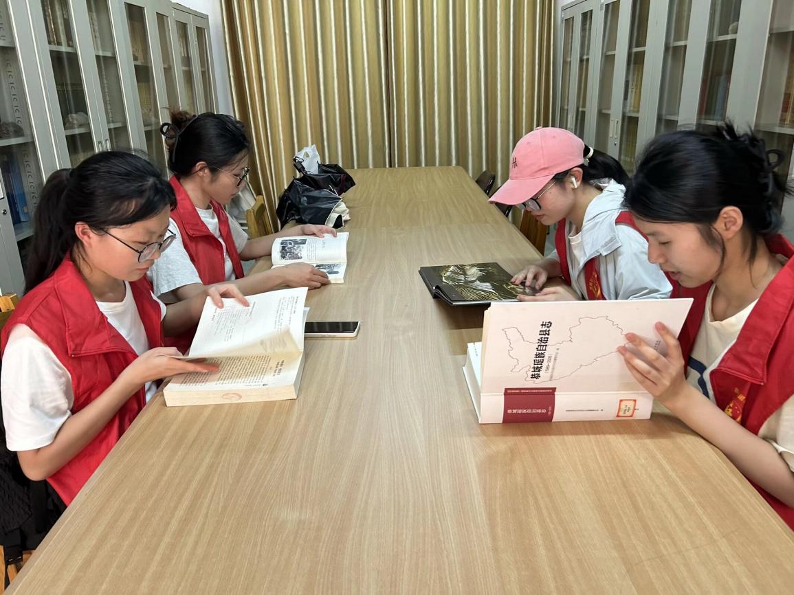 团队首站走访瑶族恭城地方资料室,查阅瑶族非遗文化有关资料。这里不仅是书籍的海洋,更是传承瑶族文化的重要阵地。地方资料室专门开设了 “瑶族非遗文献角”,陈列着大量关于瑶族油茶、瑶医药、瑶族歌谣等非遗项目的古籍文献、研究著作和影像资料。团队成员认真查阅相关书籍,记载瑶族传统服饰、美食、节日的具体内容,为后面开展非遗项目实际调研再次做好准备工作。