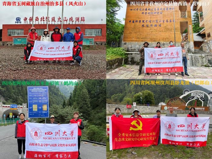 图为实践团在风火山、巴郎山、鹧鸪山、贡嘎山四地调研留影
