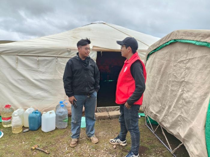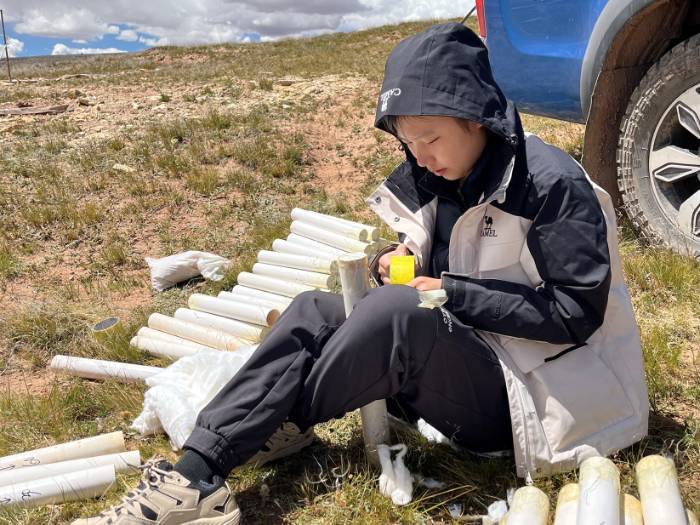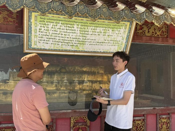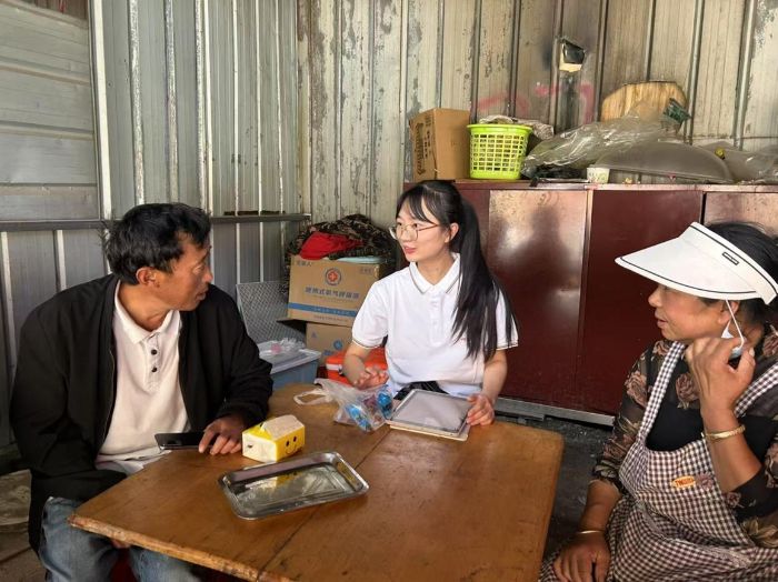 图为实践团成员采访风火山治多县藏族居民聚焦生态监测过程,描绘地表生境变化动态