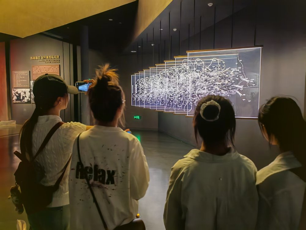 随着参观的深入,团队成员们抵达了战役场景复原区。在这里,英烈名录的墙面上布满了密密麻麻的名字,彰显了革命先烈的崇高精神。成员们认真阅读着英烈们的生平简介,仿佛与先烈们进行了一场无声的交流,深刻感受到了革命先辈的英雄事迹和伟大精神。在讲解员的详细解说下,团队成员们对淮海战役的先烈们有了更为深刻的认识,进一步理解了革命先烈为国家和人民所作出的巨大牺牲和贡献。