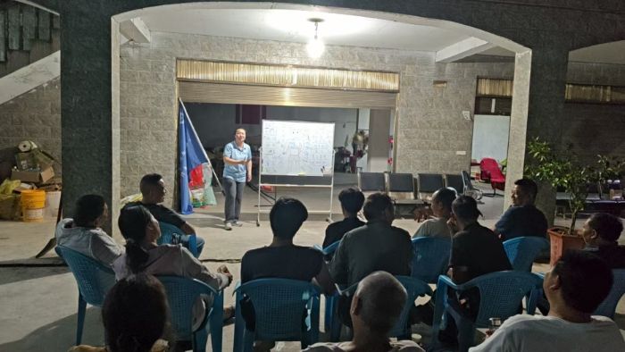 课堂的“星光”布景:没有现成的教室,小院子就是天然课堂。组长们拿凳子,细心擦拭干净。最费心思的是教学用具。没有投影仪,没有多媒体,只有一个临时的小黑板。为了让拼音更直观,他们甚至在卡片上画上夸张的嘴巴形状示意图,标注发音要点。调试好携带的蓝牙音箱和话筒,确保声音能清晰覆盖整个场地。
