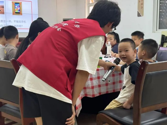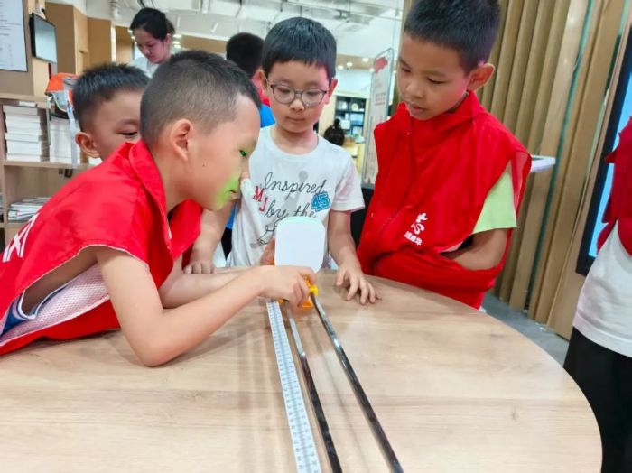 同学们利用自己的专业特长,为孩子们演示了神奇的物理实验。镜矫正近视的奥秘、凸透镜成像的规律……激光束的偏折、光屏上变幻的影像都让孩子们惊叹不已。