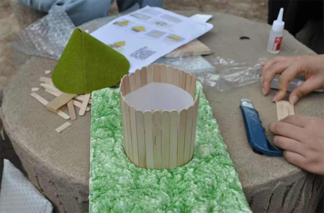 复刻远古家园:实践团队搭建半地穴式房屋感悟先民智慧 为更直观感悟半坡先民的居住智慧,实践团队利用提前准备的材料,依照半地穴式房屋的特点和结构,开展了半地穴式房屋搭建体验活动。团队成员分组协作完成房屋框架搭建、屋顶铺设等环节。在搭建过程中,大家不仅体会到半地穴式房屋在防寒保暖面的科学性,更在实践中理解了远古先民“因地制宜”的生存哲学。