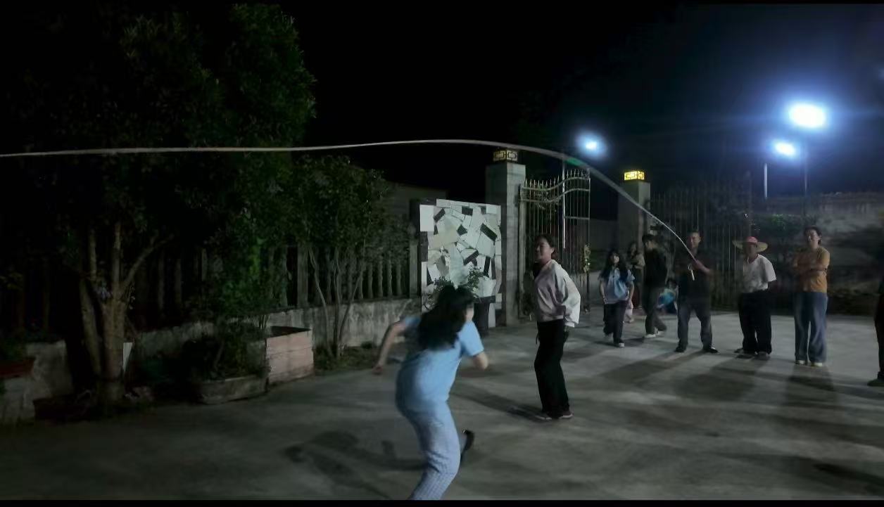 夜聚一堂:游戏场上的语言启蒙。当夕阳将打谷场染成金色,实践队精心设计的"语言游乐场"拉开帷幕。20米长的麻绳在地面荡起波浪,跳大绳的节奏里融入了"预备——起跳"的普通话指令;捉迷藏的树影婆娑间,"五、四、三"的倒数声伴着欢笑此起彼伏;篝火旁的山歌对唱,彝族老歌师在队员引导下尝试用普通话转译传统歌谣;连广场舞的《最炫民族风》也变成了双声部的教学现场,舞步与"旋转""拍手"的口令完美合拍。