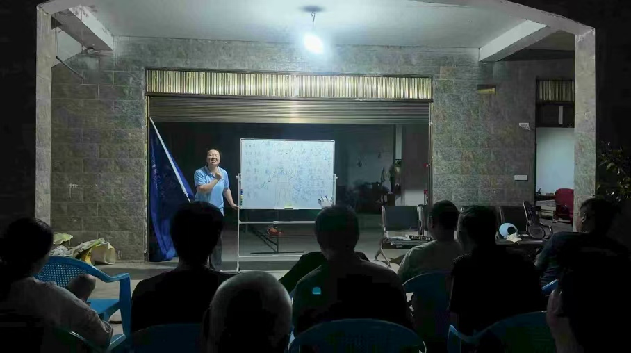 为深入贯彻落实习近平总书记关于语言文字工作的重要指示精神,推动国家通用语言文字普及提升工程深入实施,2025年7月6日,由毕节工业职业技术学院师生组成的"语你同行"乡村振兴实践团队在毕节市七星关区安山村组织开展了为期7天的推普实践活动。晨光熹微:体操韵律唤醒乡音晨曦卯时三刻,薄雾中的安山村响起《运动员进行曲》的清越号角。村口百年香樟树下,“语你同行”乡村振兴实践队编排的推普广播体操拉开帷幕。"第三节,扩胸运动——‘振兴乡村,语通四方’!"把字正腔圆的诵读融入体操口令,恰如朱熹"半亩方塘一鉴开"的教育智慧。当"第九套广播体操"的机械播报转为生活化的"晒谷要趁早,学语正当时",戴红领巾的孩童将"伸展运动"化作"风摆杨柳"的成语接龙,让白居易"绿杨阴里白沙堤"的意境跃动成现实的教学韵律。