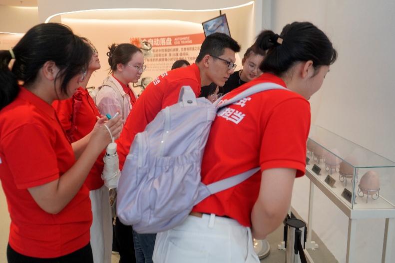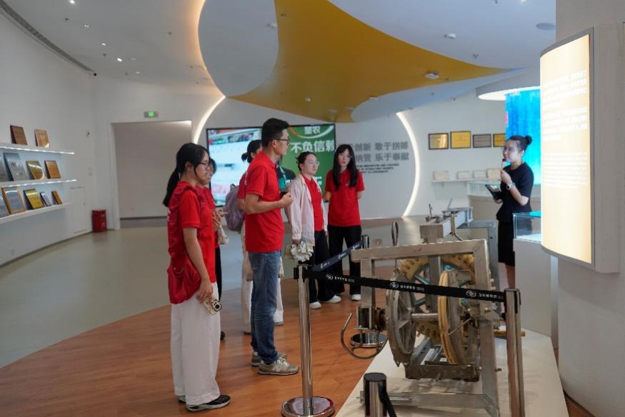 上午,实践队一行走进圣农集团博物馆。讲解员首先为实践队员播放了两段视频,让队员们了解了圣农集团“圣泽901”白羽肉鸡的由来及对其进行培育的重要性,并对圣农集团从养殖到加工的全产业链布局有了初步的认识。圣农集团的故事始于1983年。创始人傅光明带领团队从贷款2万元创办光兴孵化养鸡场起步,经过40余年的发展,集团已成为年营收超200亿元、员工数超3万人农业产业化国家重点龙头企业。