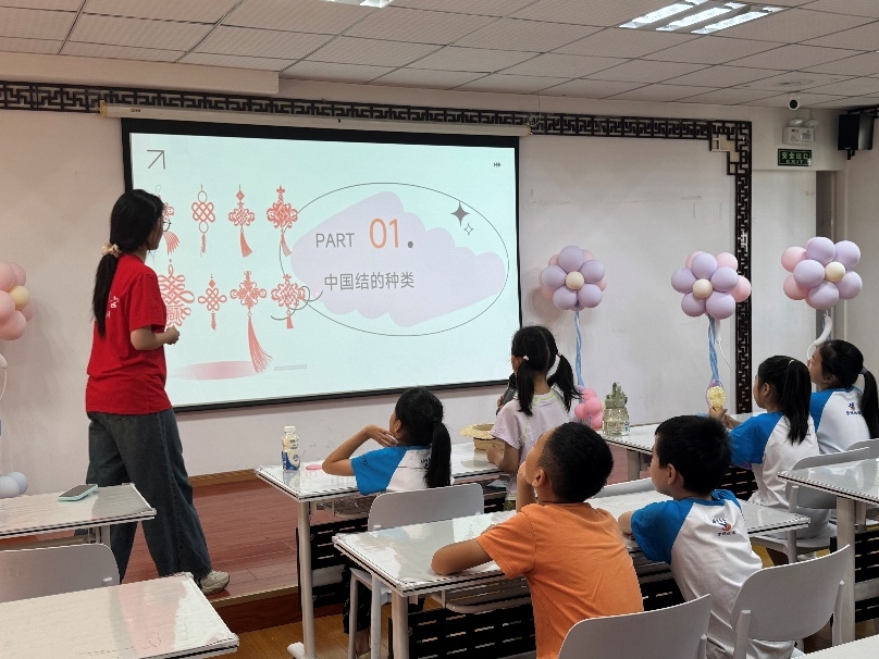 志愿者介绍中国结的样式与工艺 刘鑫宇摄