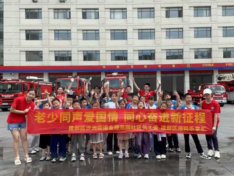 志愿者协助组织孩子们参观消防大队 周铮摄