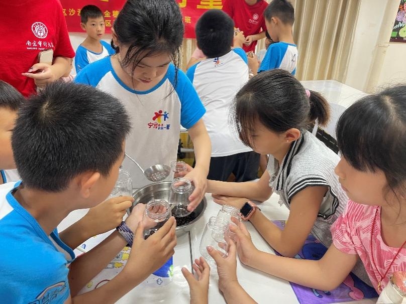 金穗,象征着丰收的季节,是平安、合作与生命力的美好表征。这个夏天,“泽穗育梦”实践团队作为金穗花园社区“爱心暑托班”授课老师的得力助手和孩子们的温暖伙伴,在教学相长的双向奔赴中见证了成长:孩子们在“行走的课堂”中开阔了眼界和视野,在“非遗手作”中传承了中华优秀传统文化,在“团结协作”中收获了暖暖的友谊。与此同时,南审学子以实际行动践行了奉献、友爱、互助、进步的志愿者精神,用多元化课程和温暖陪伴点亮了社区“三新”群体子女的暑期生活,为探索青年赋能社区和谐发展、关爱少年儿童健康成长提供了鲜活实践。