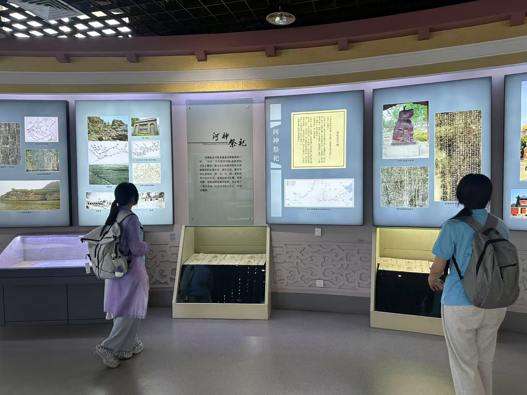 实践团赴郑州市黄河博物馆,了解了黄河流域的多地文化起源,黄河防汛工程的建设,黄河的现代化数字治理,进一步研学了黄河为实现全局性优化而进行的水资源利用配置。在博物馆中,实践团观察了黄河下游的河道示意模型,参观了参与治黄工程的照片墙,领略了古朴的黄河号子与羊皮筏,拍摄了多组有关黄河水患与治理的照片。顾书畅,刘佳慧,陈姝含,顾紫瑶,马千骅就黄河孕育出的历史文化与黄河如今出现的生态问题进行了交流,为实践报告和成果提供了一二手资料。