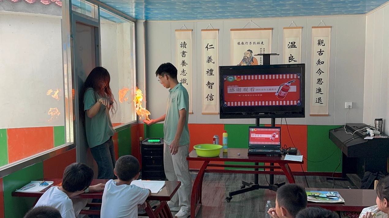 为帮助孩子们树立安全意识,掌握遇到风险应如何面对,实践队员结合乡村生活场景为孩子们设计情景模拟,趣味动画、闯关问答环节,让孩子们更加直观感受到防火防电的重要性,实践队员并用绘本标注家用火用电的注意事项,课程尾声,孩子们络绎不绝的分享自己对于用火用电所学到的知识,这堂课也在孩子们心中播种下“安全第一”的种子。