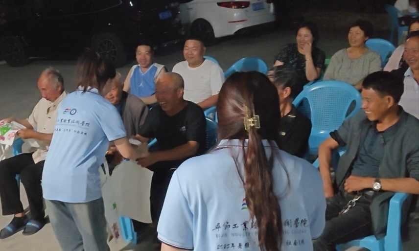 三下乡“语你同行”实践队7月赴安山村 普通话+红歌传递红色力量 2025年7月7日,恰逢党的二十一届三中全会相关节点,毕节工业职业技术学院“语你同行”乡村振兴实践队赴海子街镇安山村,开展主题普通话推广活动。实践队以红歌传唱为核心载体,将国家通用语言文字推广与红色精神传承相结合,让规范汉语与红色基因在乡土间同频共振。