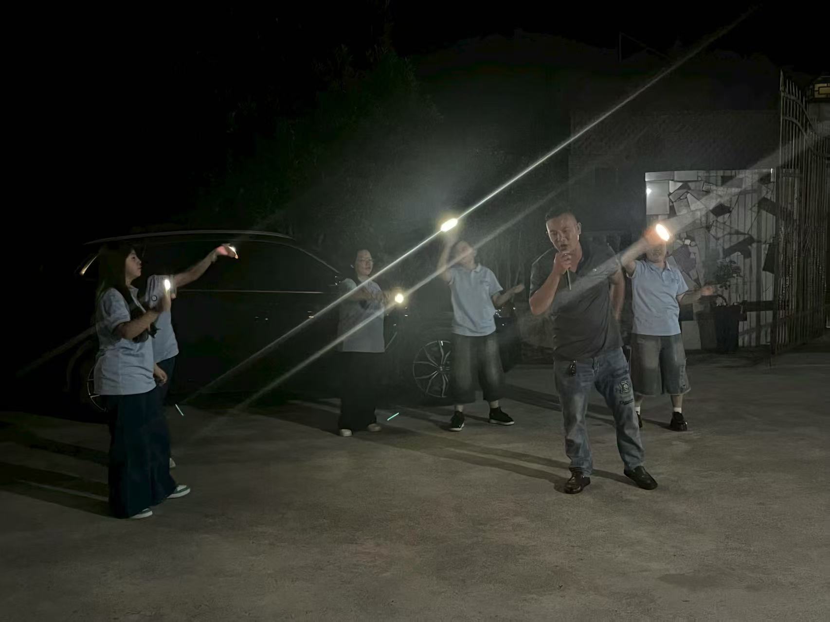 直播结束后,团队兵分两路:一路跟随村支书王大爷巡村,沿途向村民发放自制的“普通话学习礼包”(内含草帽、帆布包、故事书及文具);另一路则在村文化广场支起“夜间课堂”,将普通话教学与趣味游戏结合,为村民们打造了一场“寓教于乐”的文化盛宴。“一二三四,跳格子!”在跳大绳环节,队员们用普通话喊着口令,村民们尤其是孩子们围成一圈,跟着节奏跳跃,笑声不断;“左三圈,右三圈,红歌里面找答案”——猜红歌环节中,村民们用方言哼唱《映山红》《洪湖水浪打浪》,队员们则用普通话接唱,现场气氛热烈;“击鼓传花”环节中,拿到花的村民需用普通话讲述一句家乡故事,张奶奶讲起“当年修水库”的往事,台下掌声雷动……“这些游戏太有意思了!以前觉得学普通话枯燥,现在边玩边学,连我家小孙子都抢着要学‘跳房子’的普通话口令!”村民刘婶举着刚得到的印有“安山小课堂”的帆布包,笑得合不拢嘴。