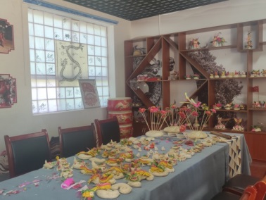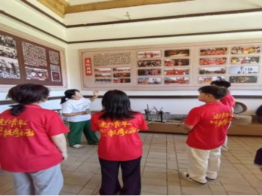 上午 11 时,实践团成员又奔赴阿党镇北村。北村拥有着源远流长、丰富深厚的历史文化底蕴,这里甚至还有着全省首家村级文联。在北村干部以及霸王鞭传承人李小亚的引领下,实践团成员兴致勃勃地参观了北村村史馆以及北村抬鼓传习所。北村的抬鼓、面花、剪纸、霸王鞭、社火等传统民间艺术声名远扬,在周边地区广受赞誉。群众对于这些传统艺术的传承和学习热情高涨,蔚然成风。特别是那独具特色的抬鼓,已然成为黄陵文化的重要象征,以及黄帝陵祭典中一张亮丽夺目的名片。