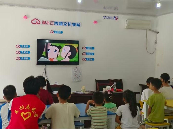 图为实践队队员向学生们展示宣传动画 毛乐铃供图