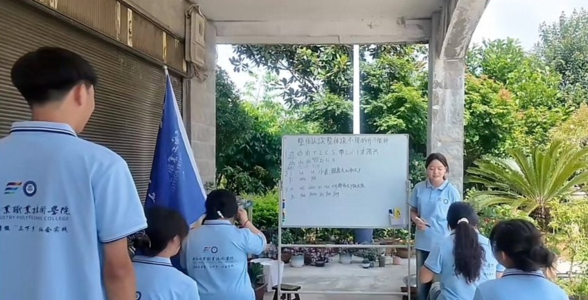 实践首日,队员们奔赴村公所,与村干部深入交流,明晰村民普通话认知度低、对其重要性缺乏感知的现状。随后踏入农家书屋,阳光透过雕花窗,照在褪色书籍上,仿佛映照出村庄与外界语言沟通的隔阂。这一趟调研,让推普任务清晰锚定——要打破隔阂,让普通话成为村民连接外界的纽带。