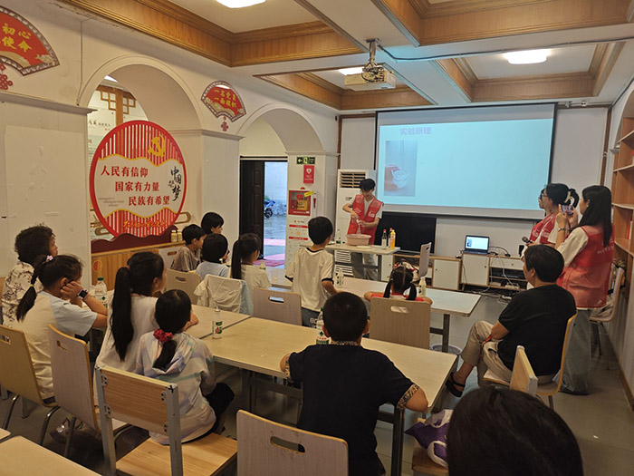 活动现场,宣讲团其他成员分工明确、协作高效。他们在孩子们中间穿梭,及时分发和更换各类实验材料,确保每个孩子都能亲手参与且安全操作,细致入微的后勤保障为活动的流畅进行提供了关键支撑。实验结束后,志愿者们迅速行动,认真清理实验台面、归整物品,让社区活动场所恢复整洁有序。宣讲团还专门设置了反馈环节,认真倾听并收集了小朋友们对此次科学之旅的感想与宝贵建议。