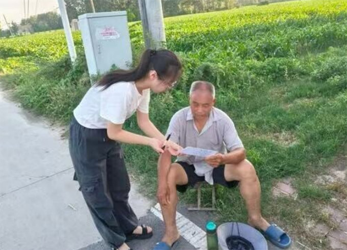 图为团队成员在进行问卷调查。李艳杰 供图