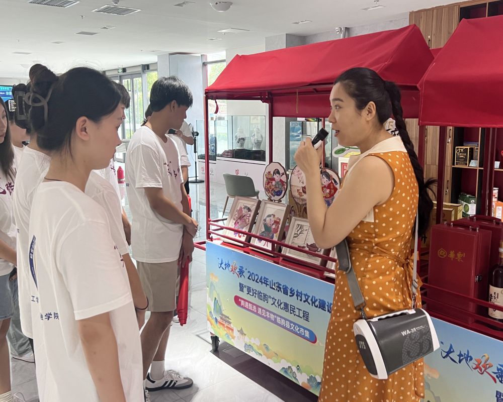 图为展馆工作人员带领延路人社会实践队队员们参观临朐文化市集。