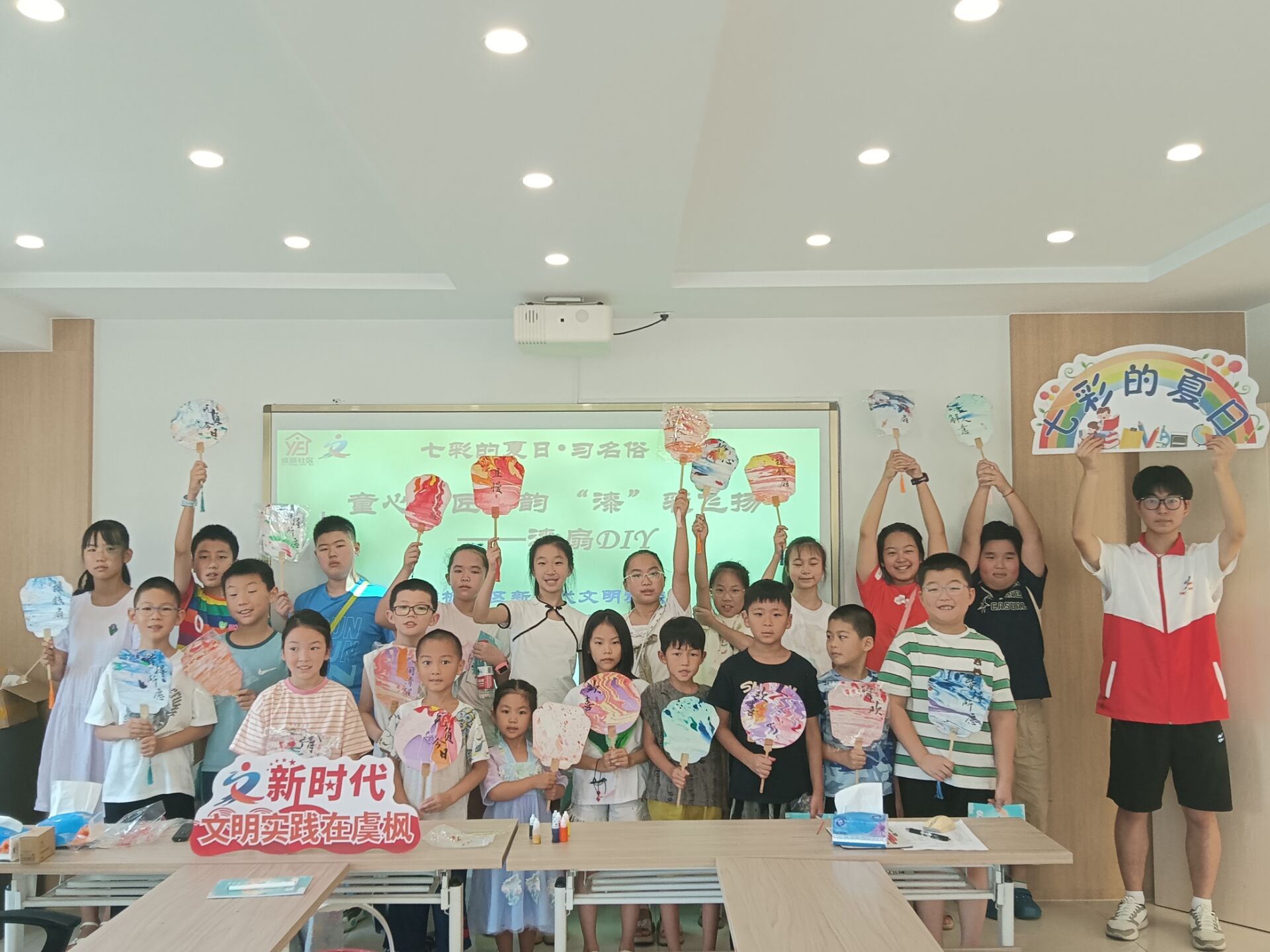 趣味课堂,点燃孩子的探索热情2024年8月8日,团队成员沈奕凡为社区所在暑托班小朋友带来了一趟趣味课程——漆扇 DIY制作。作为小朋友的大老师教授了制作技巧,还鼓励他们发挥创意,打造独特的漆扇。孩子们在动手操作中体验到了乐趣,培养了他们的动手能力和艺术感知。课程结束时,看到他们自豪地展示自己的作品,心中充满了成就感。这次活动不仅丰富了孩子们的课外生活,也让他们在创作中获得了快乐和自信。