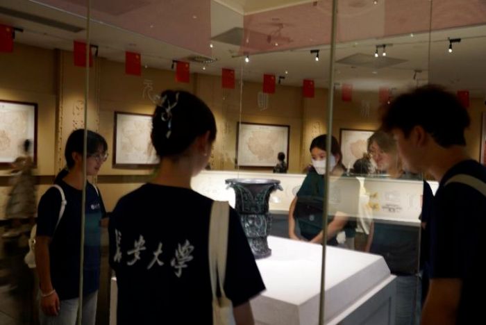 实践队首站深入宝鸡青铜器博物院,系统调研科技赋能文物展示的创新路径。博物院首创的“场景复原+多媒体投影”技术,通过1:1还原何尊出土场景和AR触发3D动画,使观众停留时长提升133%,创造了沉浸式观展的新范式。这一发现为高校文物数字化保护研究提供了典型案例。