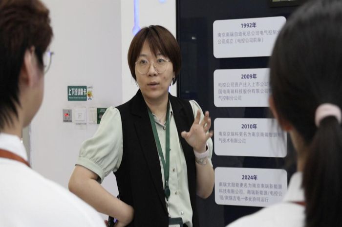 为响应国家“能源强国”战略号召,深化产教融合育人实效,2025年7月8日,南京师范大学能源与机械工程学院“能”担使命,“源”启新章——能源发展成就青年观察团走进南瑞新能源有限公司,通过展厅参观、生产车间调研、专家座谈等形式,探秘央企服务国家能源转型的实践路径。同时实践团队以该企业为样本,追溯其伴随中国能源结构优化升级转型的发展历程。