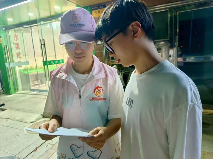 次日,志愿队将活动范围扩展至街头社区。在新城街水果店旁,志愿者们向过往行人发放文化宣传资料,详细介绍侗族大歌的独特唱腔和风雨桥建筑的精巧构造。同时,志愿队还深入居民家中,通过平板设备展示侗族服饰的精美纹样和民俗活动场景,与居民进行面对面的文化交流。这种入户宣传的方式使居民能够更直观地感受侗族文化的魅力,增强了文化传播的效果。