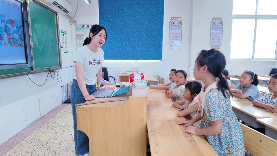 在阜宁县羊寨镇中心小学,团队以“红色传承”与“非遗新生”为双翼,打造沉浸式美育课堂。“访红色记忆,绘心中英雄”主题绘画课上,成员们引导孩子们执起画笔,将厚重的革命历史化作笔尖可触可感的英雄形象,让红色基因在童真绘作中悄然扎根。紧随其后的“非遗剪纸:指尖传承文化记忆”课程,则巧妙结合盐城冈西剪纸特色,探索“艺术+科技”活态教学,使古老技艺在数字赋能中焕发新趣。
