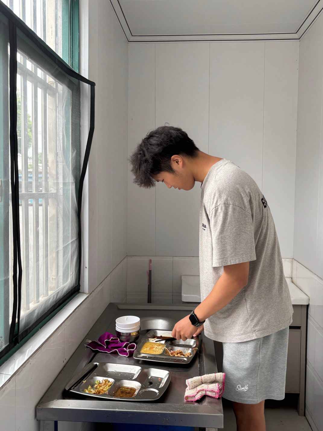 随后,实践团成员协助社区开展助餐服务,他们早早来到食堂,协助备餐、分装餐盒,并细心核对送餐信息。队员们将一份份温热餐食送至行动不便的老人家中,耐心询问饮食偏好,陪伴他们聊天交流。这一行动不仅为老人传递了温暖,更在真诚互动中弘扬了尊老敬老的文明风尚。