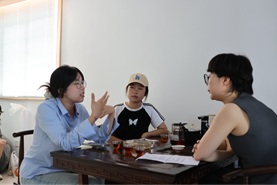图为芦淞霓裳调研组成员与金冠城负责人康总座谈。崔贞雅供图