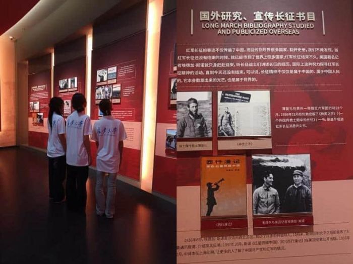 历史印证 知长征不易 中央红军长征胜利纪念园中,实践队员队员们从瑞金出发时的离别信物见证信仰启程,学习湘江战役、四渡赤水、飞夺泸定桥等重要历史事件,充分认识到斗争的残酷性,老一辈无产阶级革命家的不屈精神,以及红军战士的革命乐观主义精神,深刻体悟“三军过后尽开颜”的艰辛与不易。