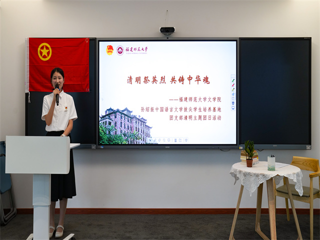 🌟为弘扬革命烈士的爱国情怀,激励支部成员坚定理想信念,4月1日下午,文学院孙绍振中国语言文学拔尖学生培养基地支部于仓山校区邵逸夫楼二楼闽台文教融合发展实验室报告厅开展主题为“清明祭英烈,共铸中华魂”的团日立项活动。文学院团委书记张晓岚老师、抗美援朝老兵黄以孟老师出席本次活动。活动由吴长欢同学主持。