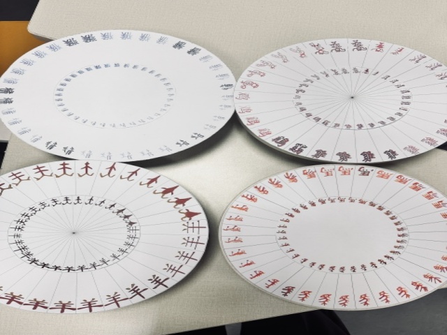 🌟支部成员选定并溯源特定古文字,就其不同时期的字形进行抄录。在这个过程中,支部成员积极交流古文字学习经验,通力合作,不断探索。最终支部成员将抄录的字形摹写在预先准备的器皿上,制成了可以通过转动直观展现字形变化的“诡盘”,并进行成果展示与心得分享。活动结束后,支部成员合影留念,“诡盘”作为支部团立项活动的文创成果保存。
