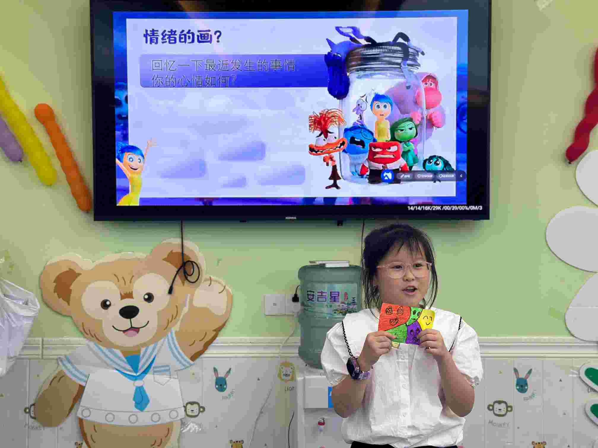 最令我感动的环节,莫过于孩子们用线条和色彩描绘自己情绪感受的那一刻。他们或低头沉思,或奋笔疾书,每一笔都蕴含着丰富的情感与故事。当我看到那一幅幅色彩斑斓的画作时,仿佛能听到他们心灵深处的声音,感受到那份纯真与真诚。在分享环节,孩子们勇敢地站在讲台上,讲述着自己画作背后的故事。那些关于快乐、悲伤、愤怒、恐惧的情绪体验,在他们的口中变得如此生动而真实。