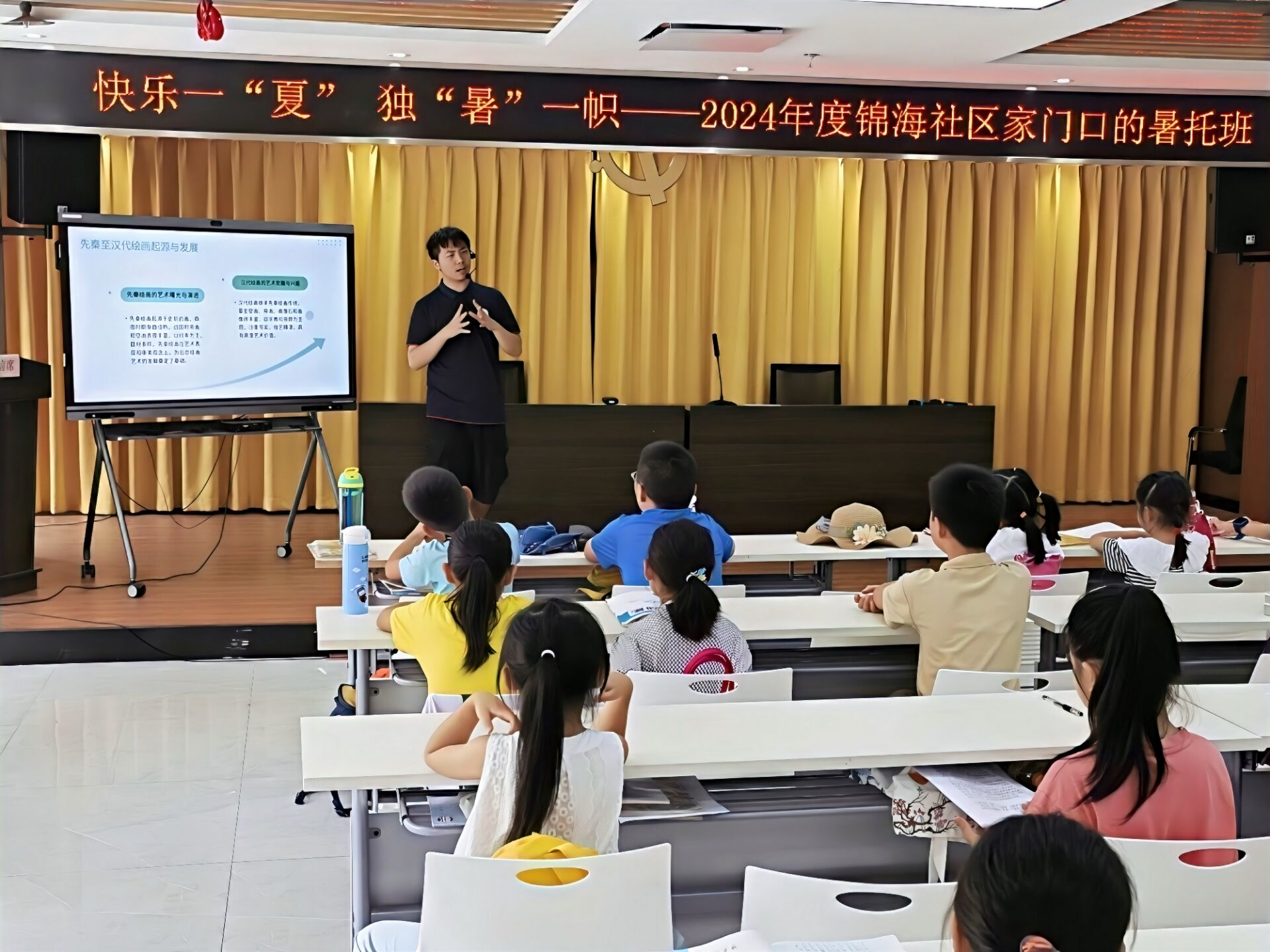 2024年6月,常州工学院“墨韵飘香,绘进风华”大学生理论宣讲团成功入选了团中央2024年中国历代绘画大系志愿宣讲团。为了更好的弘扬中国绘画在当代的精神意义,发扬习近平新时代中国特色社会主义思想,7月8日上午,“墨韵飘香、绘进风华”宣讲团前往锦海社区,开展了中国历代绘画大系宣讲活动。
