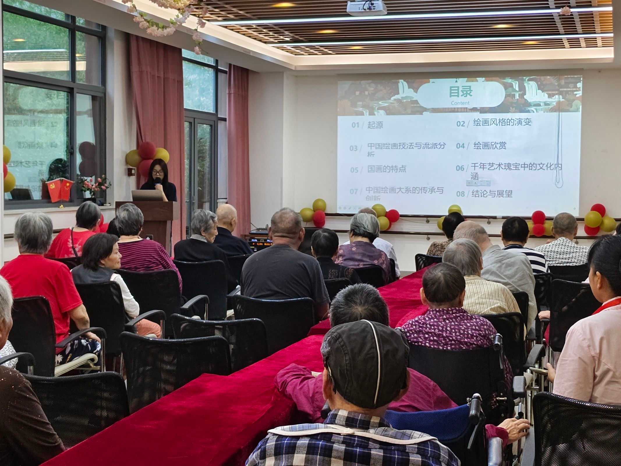 图为志愿者徐梦恒为老年人们宣讲国画的历史 通讯员 董秀兰供图