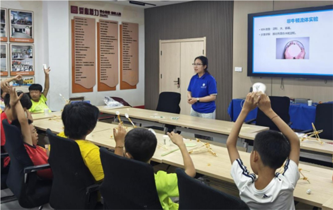 兵工科普,实验真知 7月9日,实践队开展了兵工科普实验活动。队员任荧荧讲解了非牛顿流体实验和投石车实验。在非牛顿流体实验中,孩子们亲手触摸并感受到特殊流体的奇妙特性,了解了它在装备科技中的应用。投石车实验是以古代战争中的武器为例,鼓励孩子们亲自动手参与拼接,用木棍搭建出简易的投石车结构,极大地激发了他们的好奇心和探索欲。通过实际操作,孩子们不仅学到了知识,更深刻地体会到了“实践出真知”的意义。
