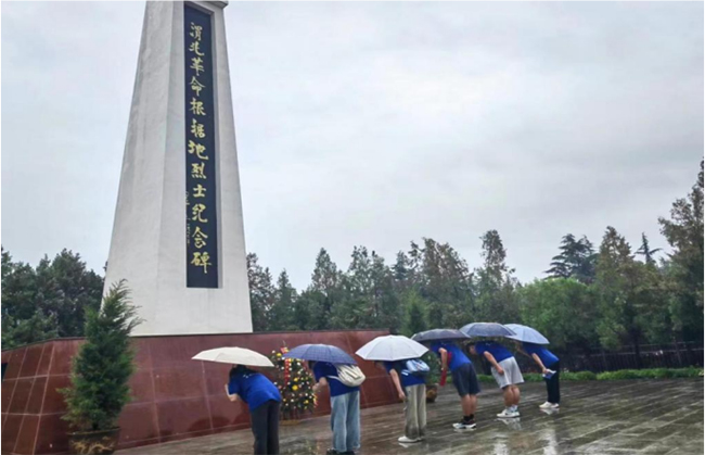 图 实践队成员在渭北纪念碑前鞠躬悼念先辈