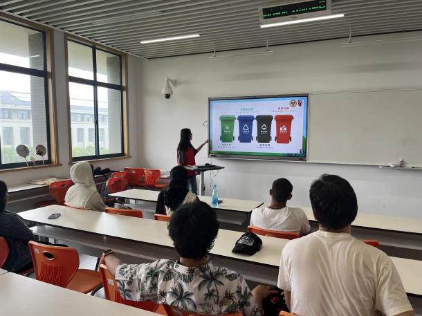 首先,志愿者同学围绕“垃圾分类”这一主题展开了知识宣讲,学习生活垃圾的种类、垃圾减量的知识、垃圾分类的意义和解决分类的方法,让留学生在教学过程中深切感受到“垃圾分类”和“垃圾减量”在生活中的重要性,从而提升分类意识,培育低碳文明思想。