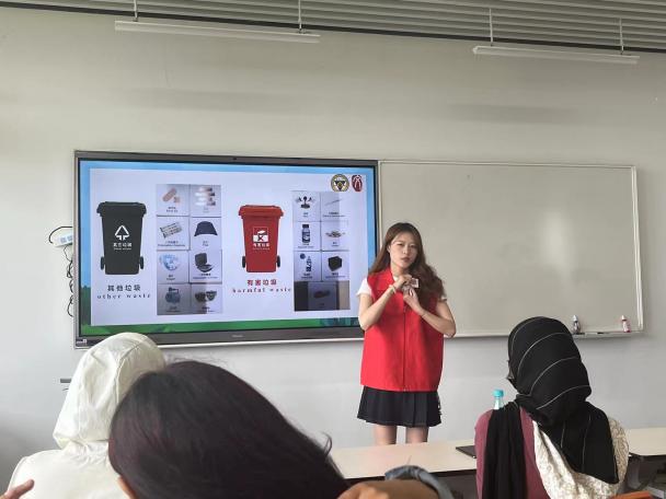 2024年6月27日下午,人文学院微光志愿服务队的同学们在九龙湖校区纪忠楼教室为留学生们带来了一场别开生面的“垃圾分类”宣讲课程。