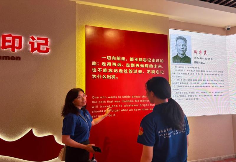 一、常忆初心 不负人民军营村地处高山之巅,形成了独特的高山文化。村民们世代居住在这里,传承着勤劳勇敢、自强不息的精神品质。7月11日上午,实践队首站来到军营村的高山党校初心使命馆。周丽芳老师进行现场授课,从“两上高山情缘”、“厦门探索足迹”、“鹭岛红色印记”等内容展开,带领实践队详细了解了在习近平同志指导下,军营村的脱贫致富路和习近平生态文明思想,深刻感受到了习近平总书记“我将无我,不负人民”的初心和使命。