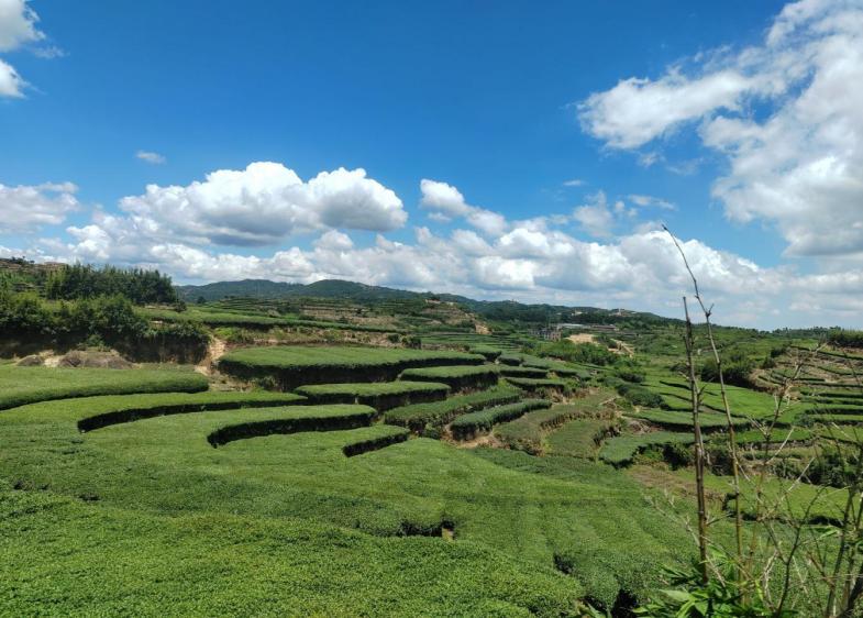 登光明顶,云雾中的茶园映入眼帘,这里的人文风貌不仅展示了白交祠村得天独厚的自然资源和丰富的文化底蕴,也见证了白交祠村在生态建设和旅游发展方面取得的显著成效,茶叶因吸收云雾中的水汽和养分而更加香醇可口,成就了村民们的致富路,这种绿色生态的发展模式使得军营村更加符合“云朵上的村庄”这一生态形象,也真正体现了“绿水青山”就是“金山银山”的生态理念。