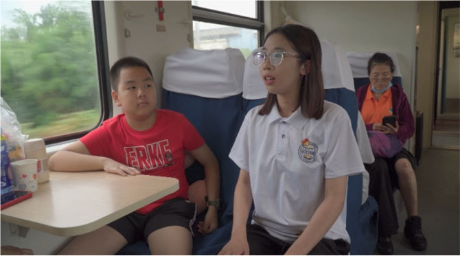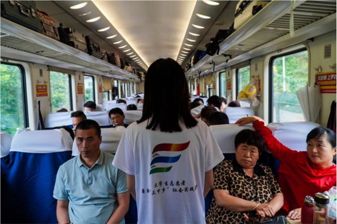 (图1为宣讲团成员郑卓依在K546列车宣讲 摄影:代俊豪)