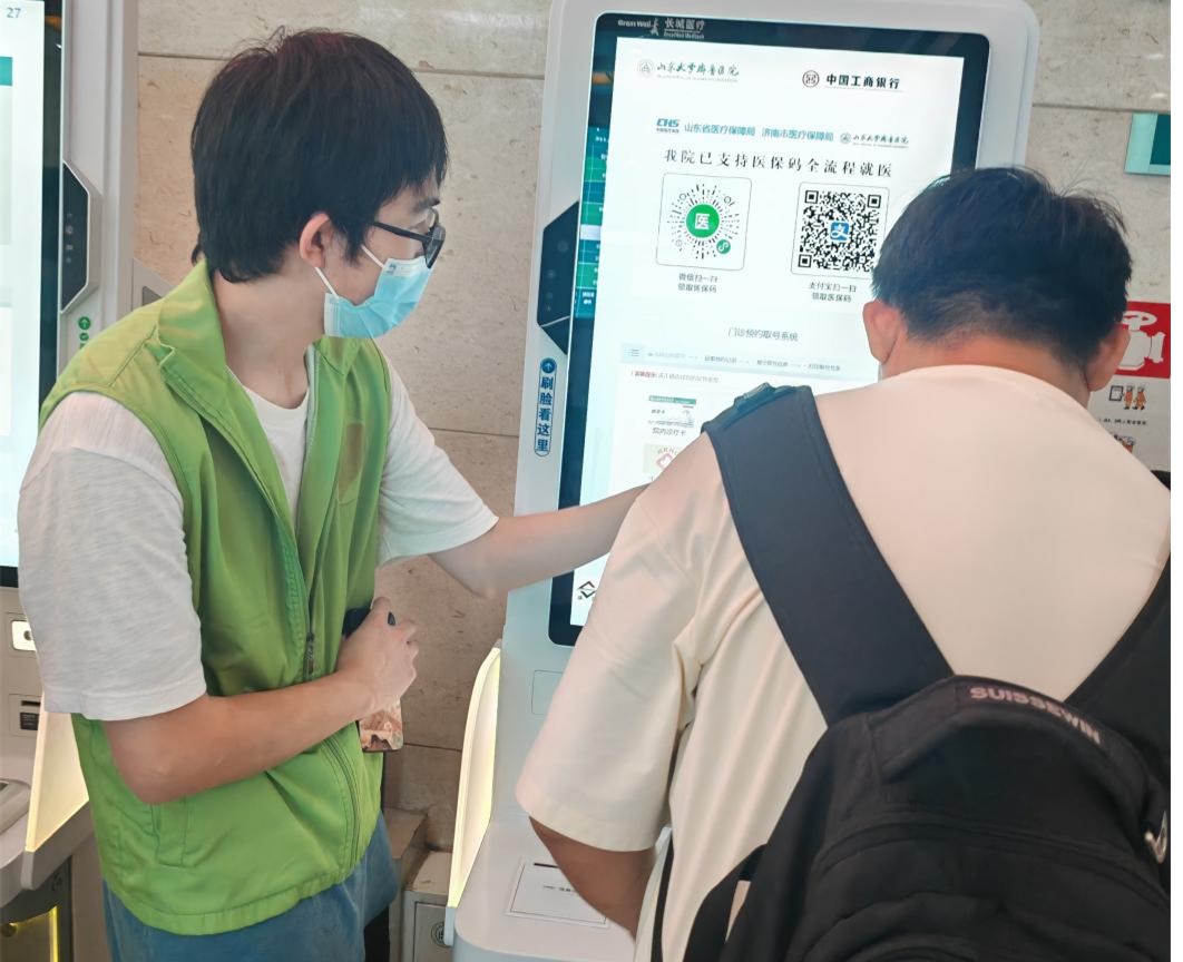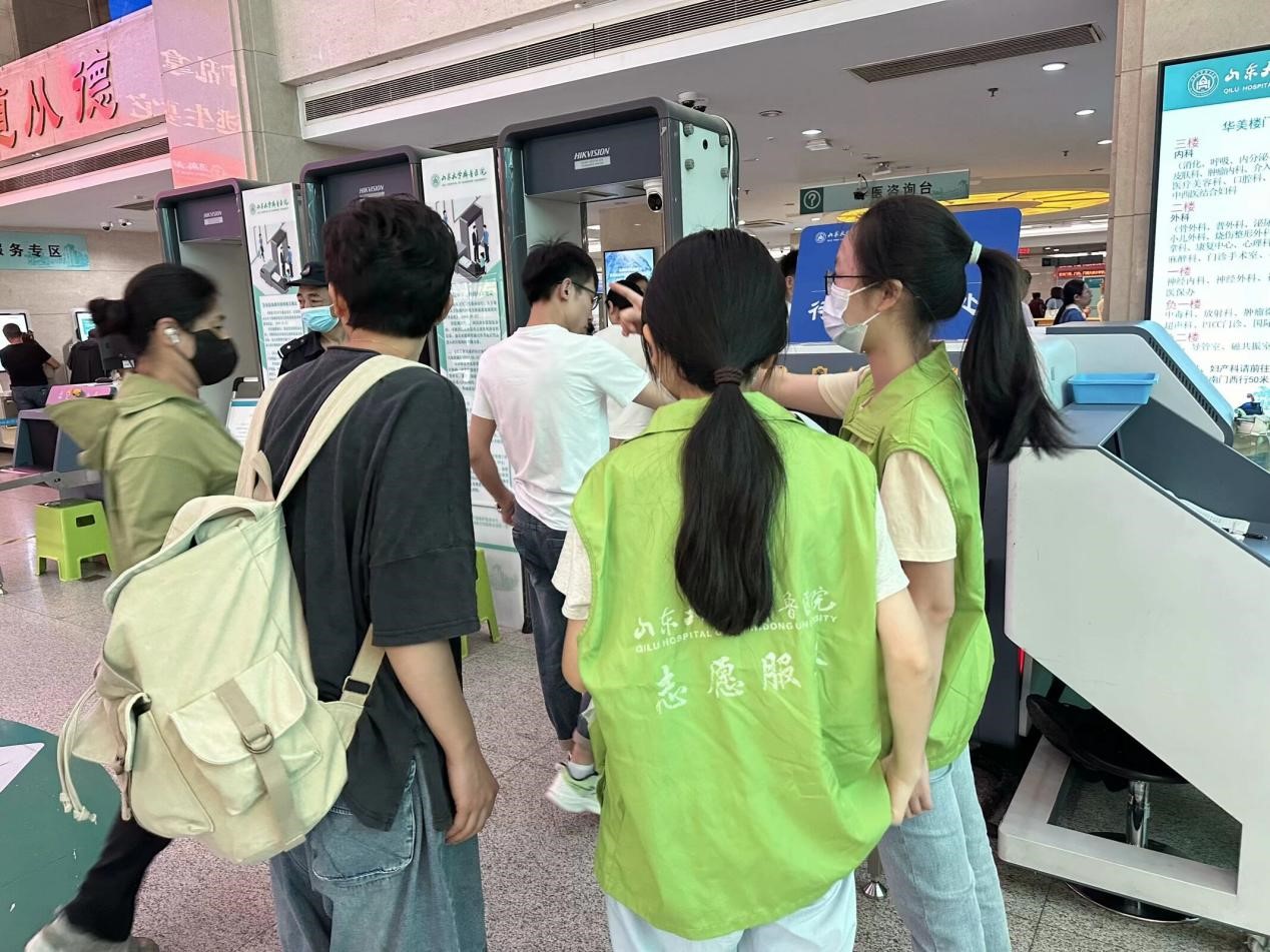 2024年7月3日至7日上午,来自山东大学控制科学与工程学院的智能医学工程班小分队,通过加入山东大学齐鲁医院学雷锋志愿服务岗,进行一系列科普教育宣传,帮助就医人员使用“山东大学齐鲁医院”小程序进行一系列预约,就诊,缴费过程,帮助就医人员使用自助服务机器,优化就医体验,优化就医流程,保障就医秩序。