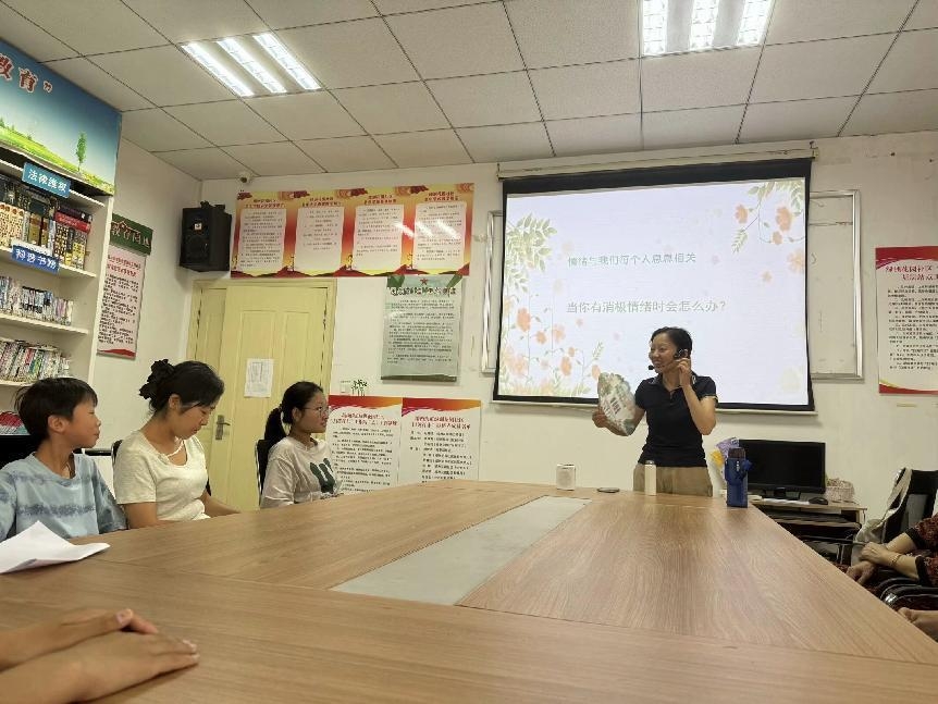 (图为裴春梅老师讲解情绪的分类。中国青年网通讯员 姚蕊琪 摄)