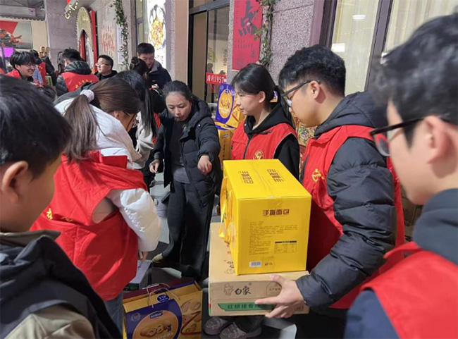 (图为实践团成员在物资发放现场,协助搬运整理爱心物资,为村民送去冬日关怀)