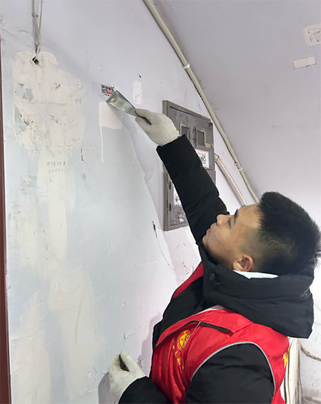 手持小铲子、喷壶穿梭在各居民楼,仔细清理楼道墙面、单元门上的小广告,让原本斑驳的墙面重焕整洁;坐在社区服务台,耐心给居民拨打电话,通知社区便民事项、核实住户信息,用亲切的话语搭建起沟通的桥梁;遇上下雪天,便拿起铁锹、推雪板和社区工作人员并肩清雪,从主干道到居民楼门口,一点点扫清道路积雪,守护居民出行安全;闲暇时还协助整理社区图书室的书籍,分类摆放、登记造册,让图书归位有序,方便居民借阅。