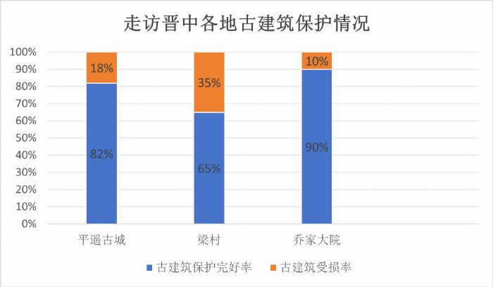 二、探访晋中三地,守护古建遗产 与此同时,团队也奔赴平遥县、太谷县与祁县,聚焦古建筑的保护与平衡。从相关数据来看,三地古建筑的现状各有不同。
