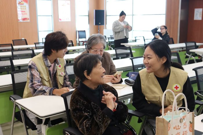“爷爷奶奶,微信视频点此绿键,如同家常通话般便捷!”近日,南通大学红十字会“红会暖夕阳,青春伴安康”志愿服务团队走进老年大学,开展精准化智能生活技能培训。志愿者秉持“人道、博爱、奉献”精神,创新“方言讲解+实操演示+一对一辅导”模式,让科技红利直达银龄群体,助力跨越“数字鸿沟”。