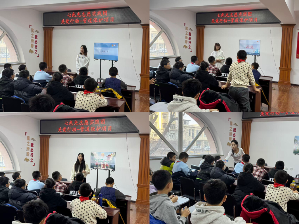 在“关爱行动-管道保护项目”主题宣讲中,志愿者们将“两弹一星”精神与管道保护知识深度融合,通过历史故事与生活化比喻,让孩子们理解守护能源管道就是守护国家安全。课堂上,志愿者们设计了管道模型拼接、知识抢答等互动环节,引导小学生识别危害管道的行为,并收集到孩子们稚嫩却坚定的管道保护承诺。